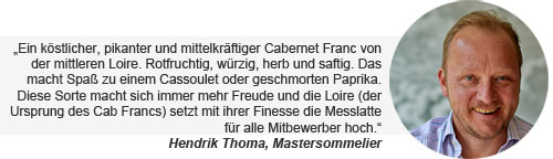 Cabernet Franc wie wir ihn lieben: Kühl, mineralisch herb, saftig, rotfruchtig, würzig und mit einem Hauch von geschmorten roten Paprika im Aroma. Ein knackiger, rescher Ausdruck, der vor allem zu rustikalen Gerichten mit Linsen und Bratwurst oder geschmorten Gemüsen ein kulinarischer Höhepunkt ist.