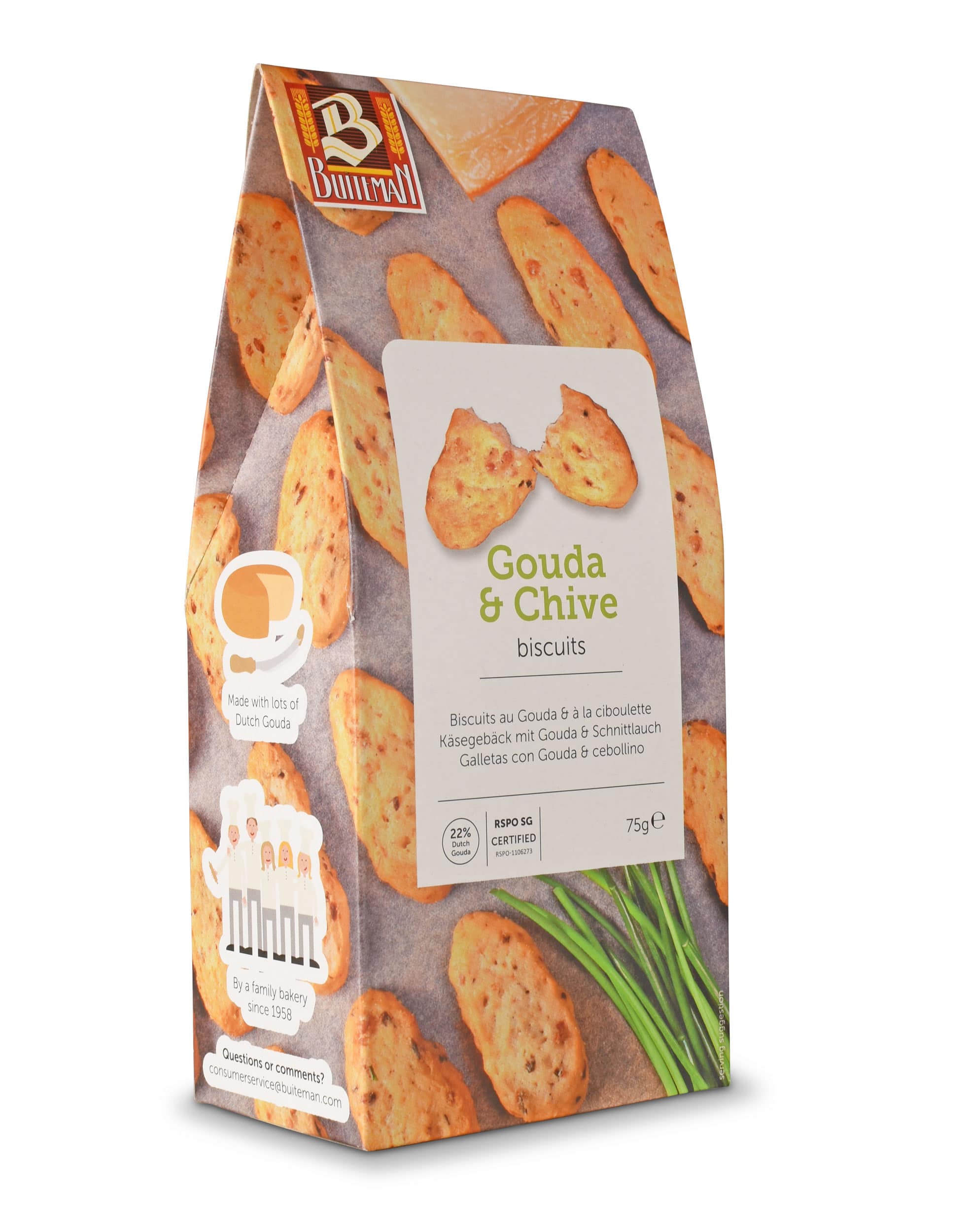 Verkehrsbezeichnung: Käsegebäck mit gereiftem Goudakäse und Schnittlauch
