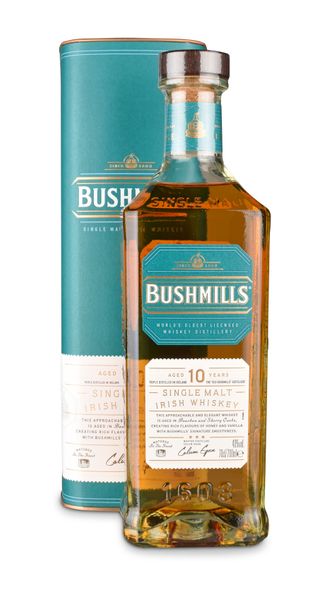 Der "Bushmills Malt 10 Years Old Single Malt" ist ein leichter, süßlicher Whiskey mit einer angenehmen Malzigkeit und einem schönen Abklang. Gereift in Ex-Bourbon- und Sherryfässern.