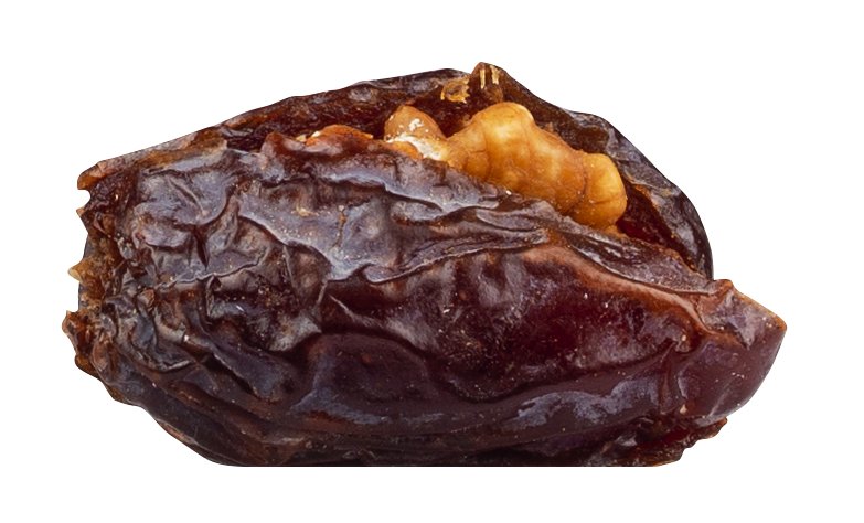 Die große, butterweiche Medjool ist die Königin unter den Datteln. Sie wird mit Walnuss gefüllt. Ein köstlicher Geschmack und Biss.
