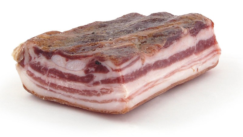 Für die Produktion wird ausschließlich Speck und Fleisch vom Eichelschwein verwendet.