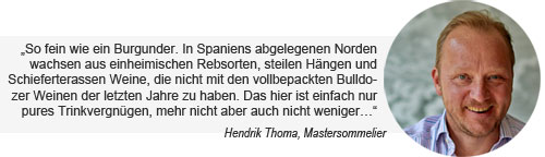Dieser 70 Jahre alte Weingarten liegt auf 550 – 750 Meter Höhe. Ein gemischter Satz der galizischen Sorten Mencia, Mouraton, Garnacha Tintorera, Caino und Bastardo. Der Boden besteht aus verwittertem Schiefer und Granit. Beim Ausbau in alten Fässern wurde die Schwefelzugabe weitgehend reduziert und der Wein ist unfiltriert und ungeschönt abgefüllt worden.