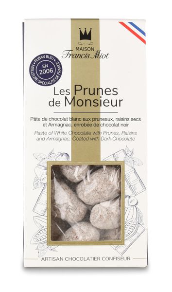 Verkehrsbezeichnung: Weiße Schokoladen Praliné mit Pflaumen und Armagnac