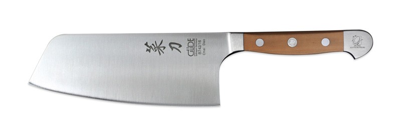 An das Klingenmaterial von Messern sind eine Fülle von Anforderungen zu stellen, die sich zum Teil widersprechen. Also gilt es, ein Optimum zwischen den verschiedenen Anforderungen zu realisieren. So soll ein Messerstahl hart sein, jedoch nicht zu hart, da er ansonsten brechen würde. Er soll aber auch nicht zu weich sein, da das Messer sonst durch Abnutzung zu schnell stumpf werden würde. Daher sind die Messer der Güde Serie Alpha aus einem Chrom-Molybdän-Vanadium-Stahl gefertigt, der eine optimale Härte von ca. 57-58 HRc (Rockwell) hat.