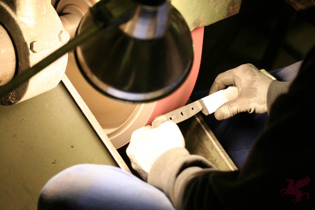 Die Klinge für ein Güde Messer wird ganz traditionell im Gesenk geschmiedet. "Schmieden im Gesenk sorgt für eine hohe Materialfestigkeit auch bei dynamischen Beanspruchungen der Klinge. Beim Gesenkschmieden wird der gesamte Schmiede-Rohling erwärmt und verformt.