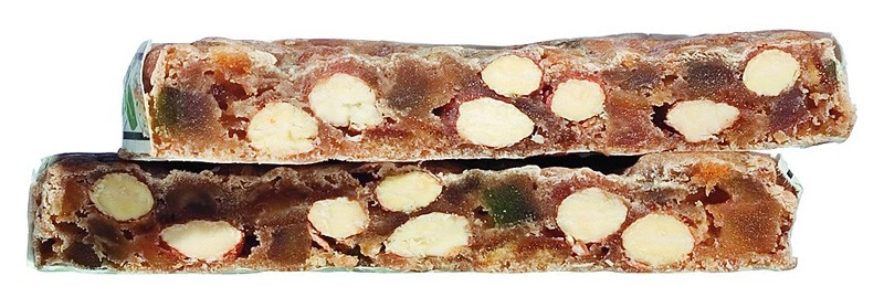 Zutaten: kandierte Früchte 33% ( Orangenschalen, Zitronenschalen, Glukosefruktosesirup, Zucker, Säuerungsmittel: Zitronensäure), MANDELN 30%, Zucker, WEIZENmehl (GLUTEN), Invertzuckersirup, Honig, Gewürze, Waffel (Kartoffelstärke, Wasser, Sonnenblumenöl) Puderzuckertütchen: Zucker, WEIZENstärke (GLUTEN), Vanillin