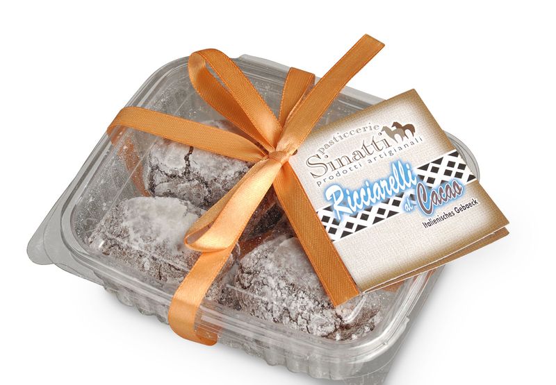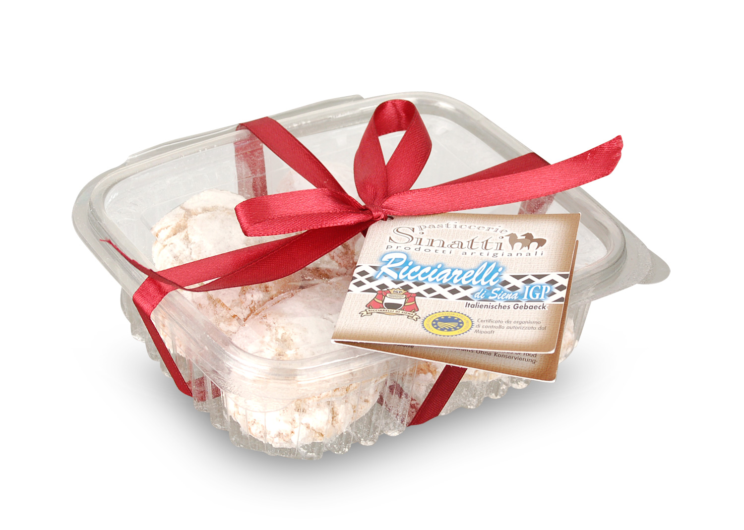 Eine der herausragenden Kreationen der Pasticceria Sinatti sind die Ricciarelli. Diese Mandelkekse, gesüßt mit Honig und Zucker und ursprünglich mit Orangeat verfeinert, haben ihren Ursprung vermutlich im Orient. Einer Überlieferung zufolge brachte ein Sieneser namens Ricciardetto della Gherardesca nach seiner Rückkehr von den Kreuzzügen diese exotische Köstlichkeit in seine Burg bei Volterra. Er soll an die gebogenen Formen von Sultanspantoffeln erinnert haben. Tatsächlich handelt es sich um eine grobkörnige Marzipanmasse, angereichert mit kandierten Früchten und Vanille, die zu rhombenförmigen, aus zwei gegenläufigen Dreiecken bestehenden Stücken geformt wird. In zahlreichen historischen Schriften sind sie als „marzapanetti nach sienesischer Art“ oder später auch als „morselletti“ erwähnt, bis sich schließlich der Name „Ricciarelli“ durchsetzte.