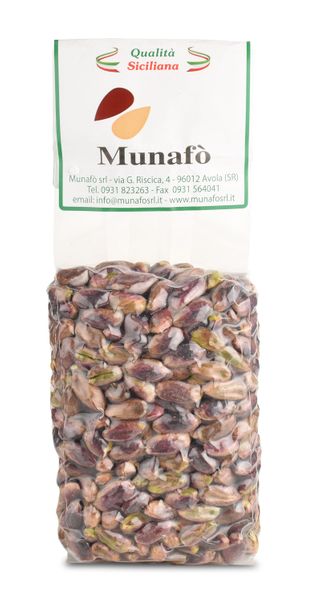 In ihrer sizilianischen Heimat nennt man sie 'die grünen Diamanten aus Bronte'. Wenn Pistazien, dann diese. Gewachsen auf Lavaböden am Fuße des Ätna, von Hand geerntet, geknackt und in der Sonne getrocknet. Sie sind besonders groß und schmecken sehr aromatisch und unverwechselbar fein. Für uns die absolut besten Pistazien. Wir bieten ihnen diese feinen Pistazien in drei Ausführungen an: Geschält und geröstet, roh und wie hier geschält und gehackt an.
