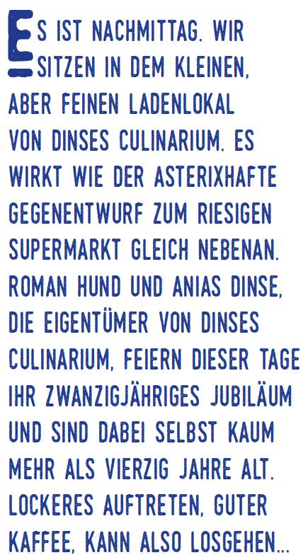 Qualität. Ein Begriff von mittlerweile zweifelhaftem Ruf, weil nahezu jeder ihn im Schilde führt. Dinses Culinarium möchte, dass Qualität wieder als Herausforderung und Ehrensache verstanden wird, indem man für das Beste brennt. Und, liebe Händler, dass wir zwischen gut und beliebt trennen und dabei auf unsere Kunden setzen, die schon dafür sorgen werden, dass am Ende das Gute siegt.