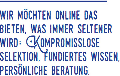 Wir möchten online das bieten, was immer seltener wird: Kompromisslose Selektion, fundiertes Wissen, persönliche Beratung.