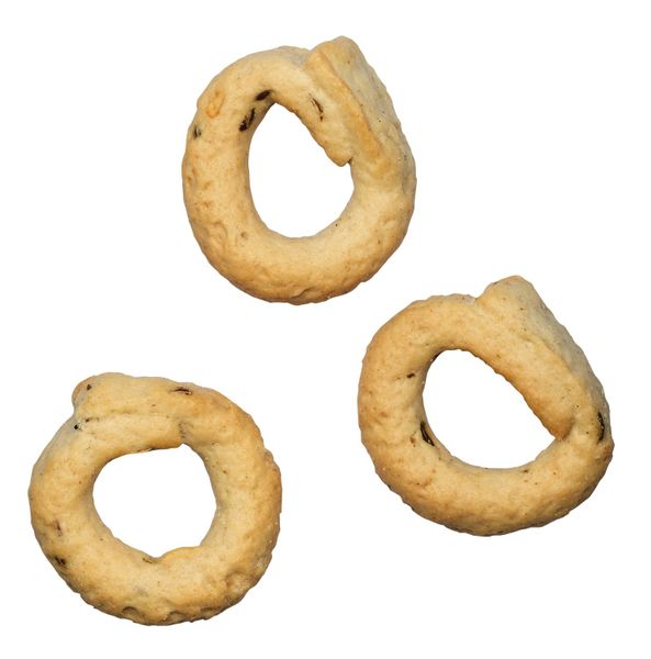 Ein feiner Fenchelgeschmack würzt dieses knusprige Gebäck. Die traditionellen Kringel, mit Olivenöl und Weißwein gebacken, schmecken sehr gut zu einem kräftigen Weißwein aus dem Süden.