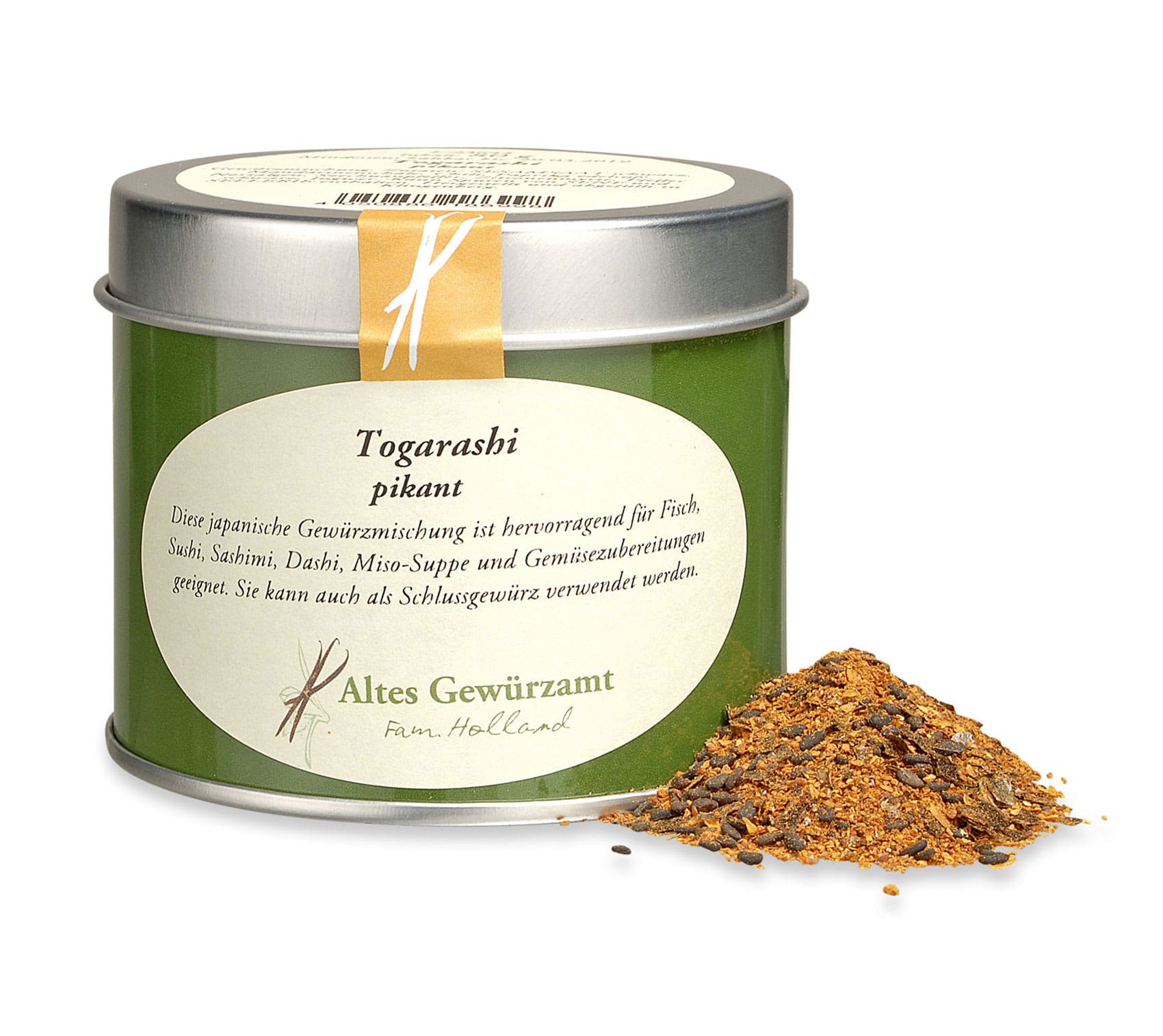 Zutaten: SESAMsaat schwarz, Mandarinenschale, Chili, Paprika edelsüß, Norialgen, Szechuanpfeffer, Zitronenmyrte, Pfeffer schwarz, Ingwer.