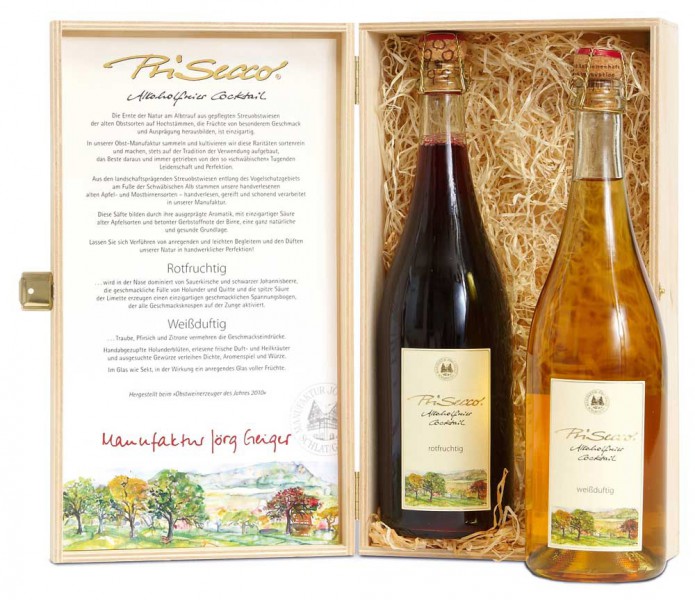 Zutaten: Apfelsaft (50%)*, Birnensaft (20%)*, Traubensaftkonzentrat, Pfirsichsaft, Zitronensaft, Kräuter (0,2%), Holunderblüten (0,2%), Gewürze, Kohlensäure. *hergestellt aus Schwäbischem WiesenObst