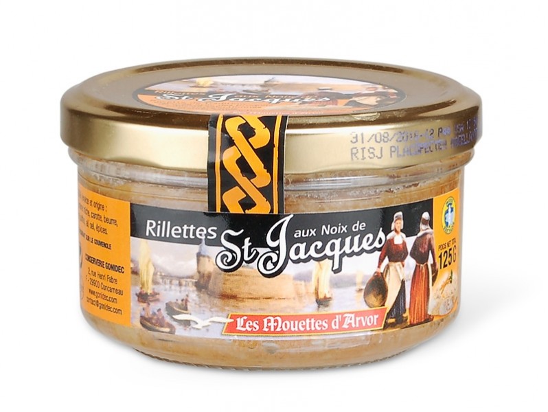 ZUTATEN: Sahne (MILCH), Jakobsmuschelfleisch 25% (MOLLUSKEN), Dorsch 25% (FISCH), Zwiebeln, geräucherter Speck 2,5%, Olivenöl, gesalzene Butter (MILCH), Meersalz, Eau de Vie de Cidre, Pfeffer, Verdickungsmittel: Agar-Agar (Algenextrakt)