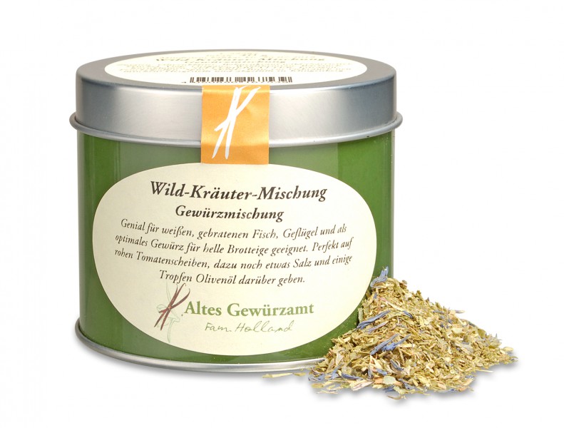 Zutaten: Olivenblätter, Bohnenkraut wild (Sarriette), Fenchelsaat, Ysop, Oregano, Wildthymian, Bärlauch, Kornblumen, SELLERIEblätter, Estragon, Fenchelpollen.