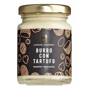ZUTATEN: Butter 26% (MILCH), Sahne (MILCH), Wasse, gesalzene Sardellen (FISCH) 13,5%, MILCHeiweiß, Maisstärke, Sommertrüffel (Tuber aestivum Vitt.) 1%, natürliches Aroma,