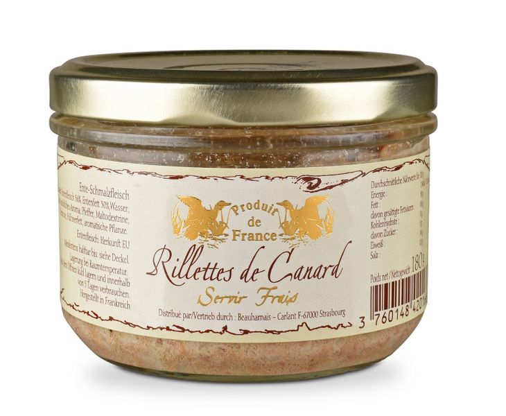 Zutaten: Entenfleisch geräuchert (50%), Schweinefleisch, Entenfett, SENF mit Piment Espelette (Wasser, SENFkörner, Essig, Salz, Säuerungsmittel: Zitronensäure, Kurkuma, natürliche Aromen, Antioxidationsmittel: Ascorbinsäure, Konservierungsmittel: KaliumdiSULFIT, Piment d'Espelette (4%)), Salz, Piment