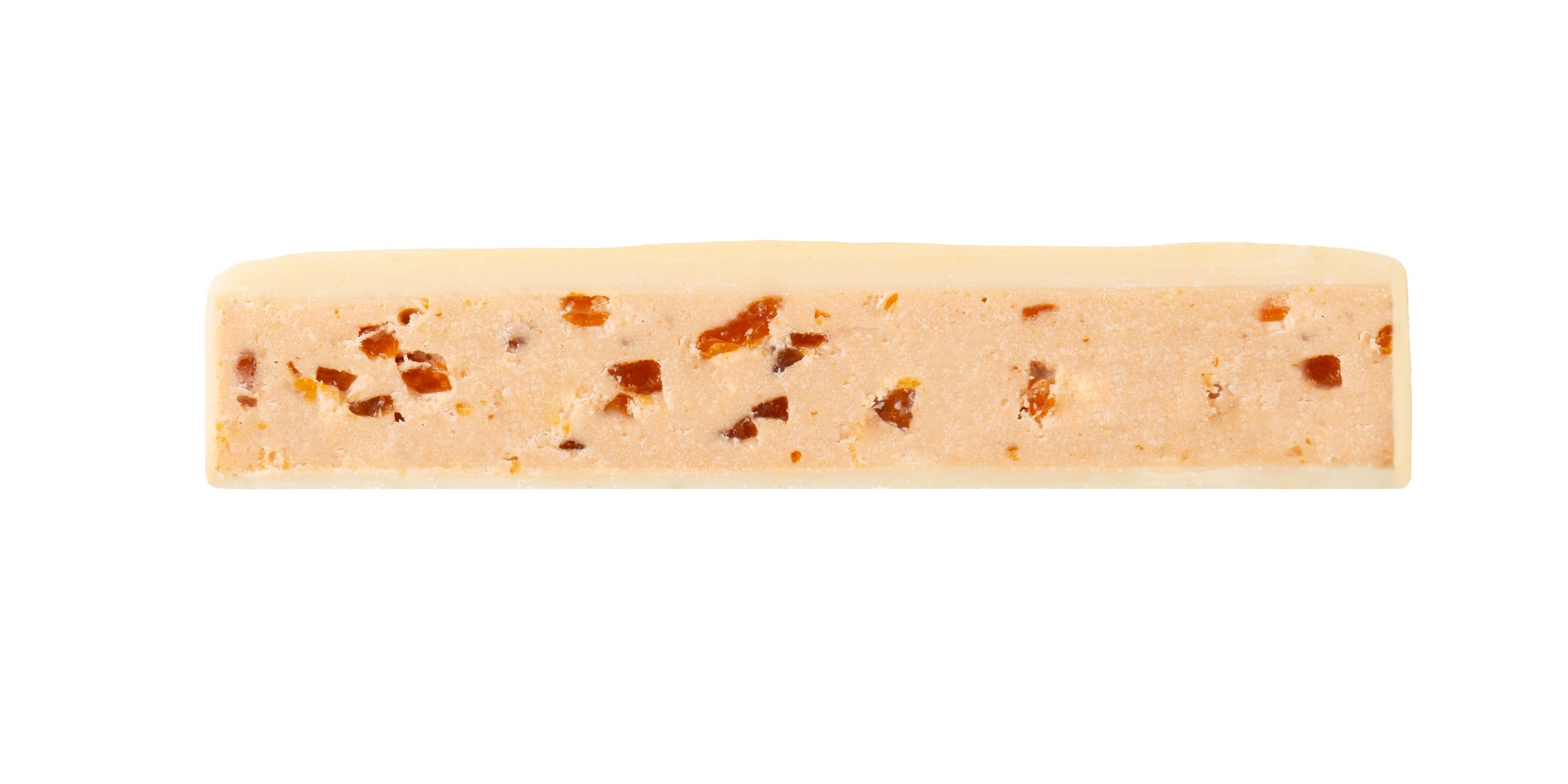 Weiße Schokolade° gefüllt mit Honig-Karamell-Crisps°
