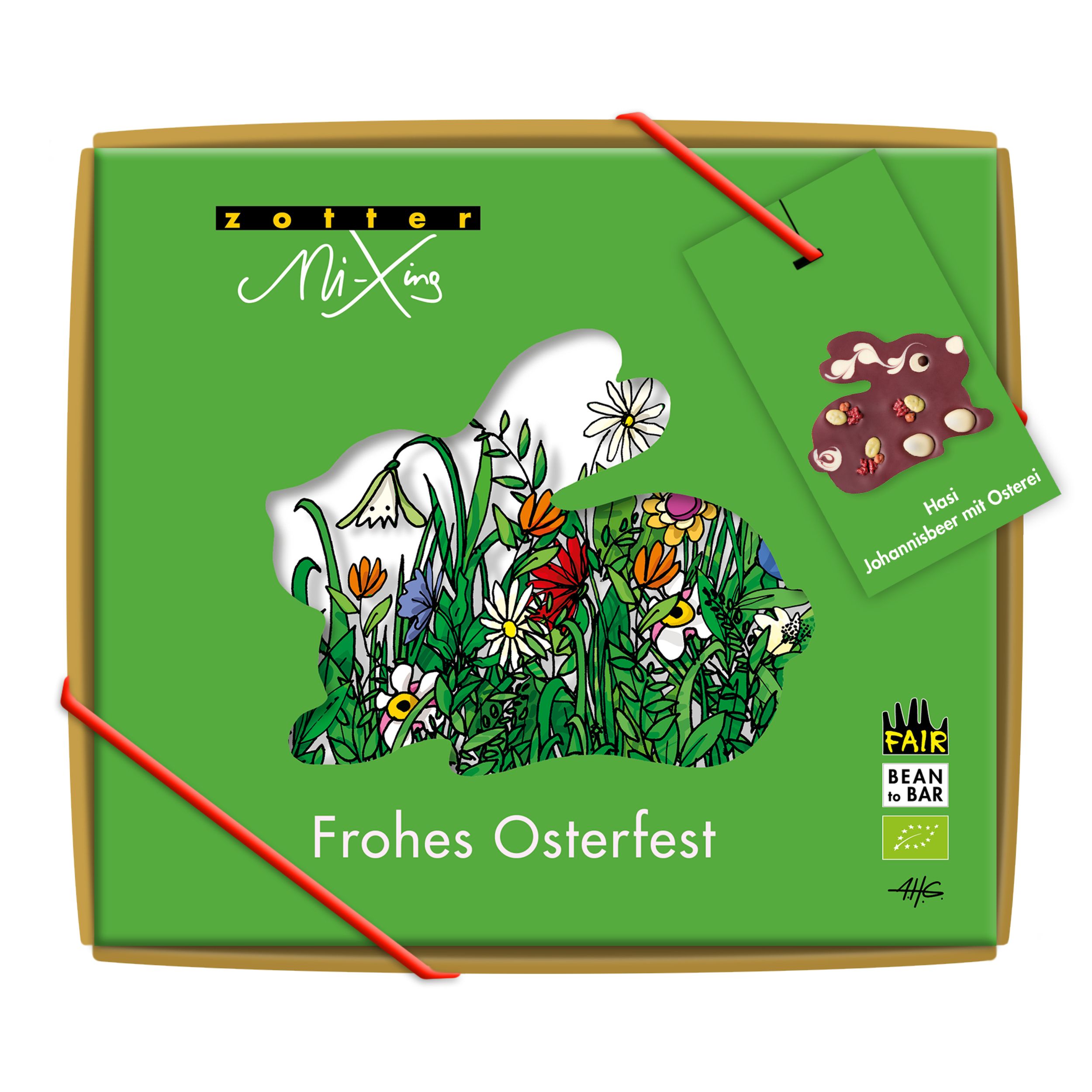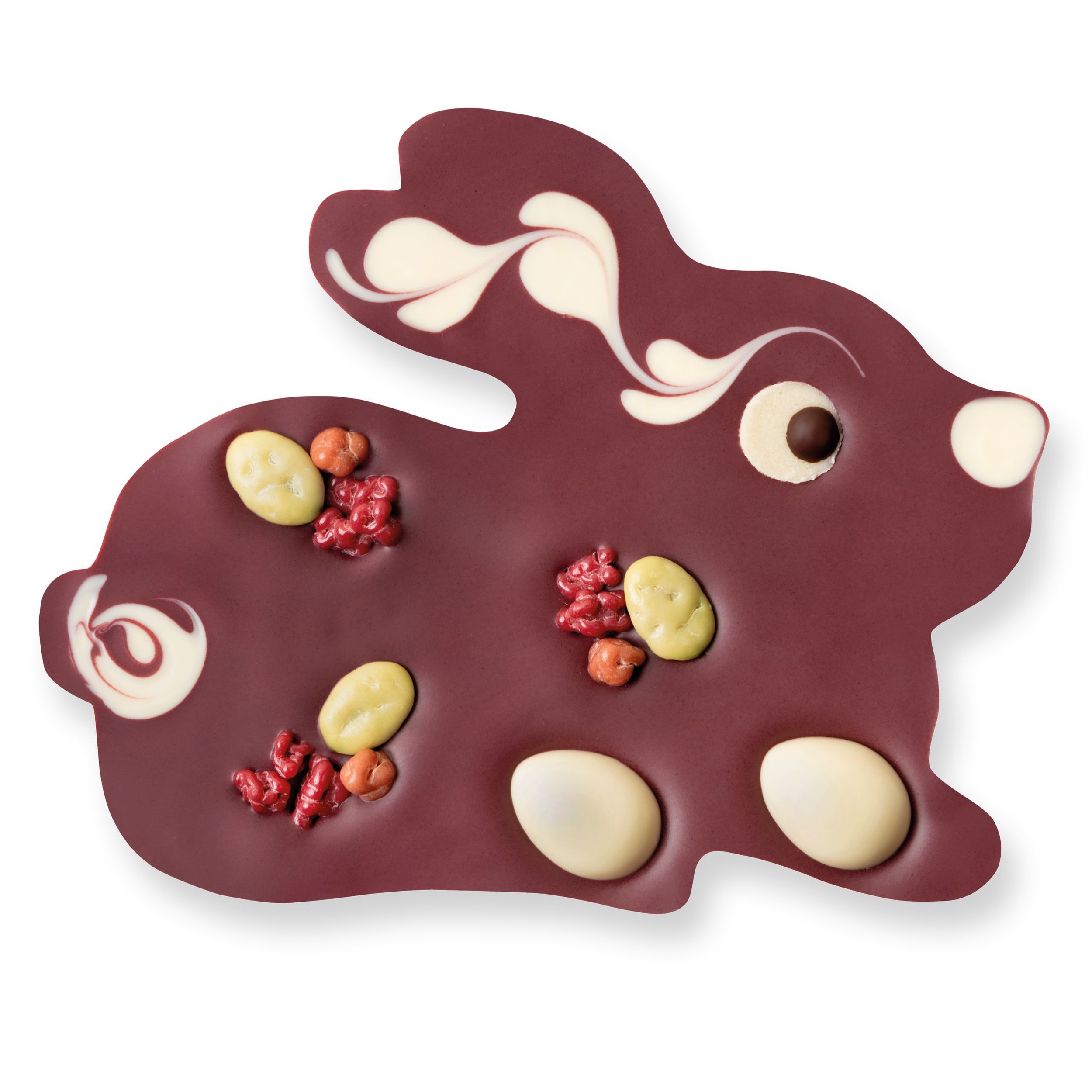 Johannisbeer-Hase° mit Kakaobutter° und Dekor°