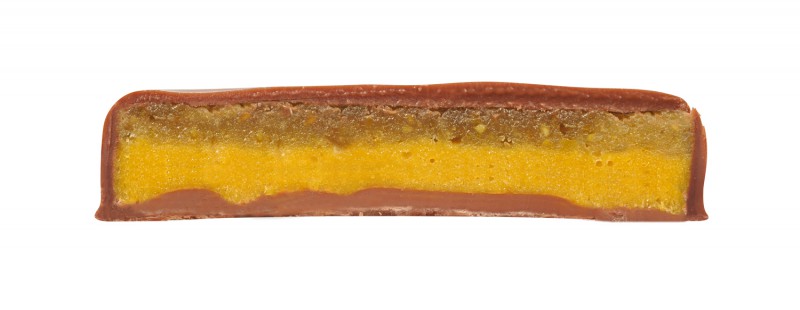 Verkehrsbezeichnung: Milchschokolade° gefüllt mit Pistazienmarzipan°(30%) und Safran°(0,02%) - alkoholhaltig
