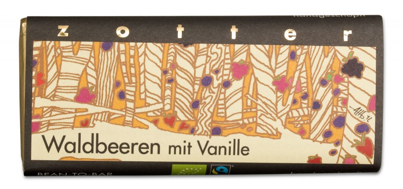 Zutaten: Rohrohrzucker°*, Kakaobutter°*, Kakaomasse°*, VOLLMILCHPULVER°, VOLLMILCH°, MAGERMILCHPULVER°, Honig°, Reissirup°, Erdbeeren°, Heidelbeeren°, Himbeeren getrocknet°, MANDELN°, Preiselbeerkonzentrat°, Johannisbeerkonzentrat°, Erdbeeren getrocknet°, Johannisbeeren getrocknet°, Heidelbeeren getrocknet°, SÜSSMOLKENPULVER°, Vollrohrzucker°*, Emulgator: Lecithin (SOJA)°, Vanilleschotenpulver°*, Steinsalz, Zitronenpulver°(Zitronensaftkonzentrat°, Maisstärke°, Zucker°), Zimt°*, Rosenblüten°